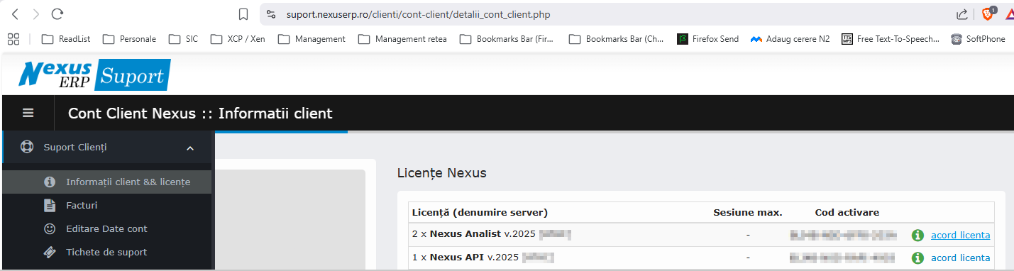 4. Se apasa pe butonul Activez. Noua licenta va fi disponibila pentru alocare in modulul Nomenclatoare si Unelte, Administrare, Licente.