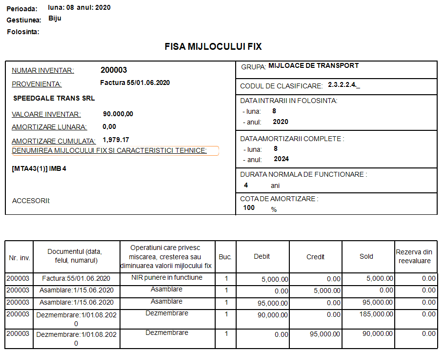 Imobilizarea care pastreaza istoricul va avea acelasi numar de inventar ca imobilizarea dezmembrata/iesita.