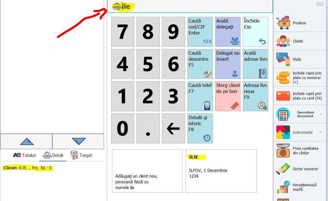 Dupa ce am setat clientul pe masa deschisa, adaugam toate produsele consumate.