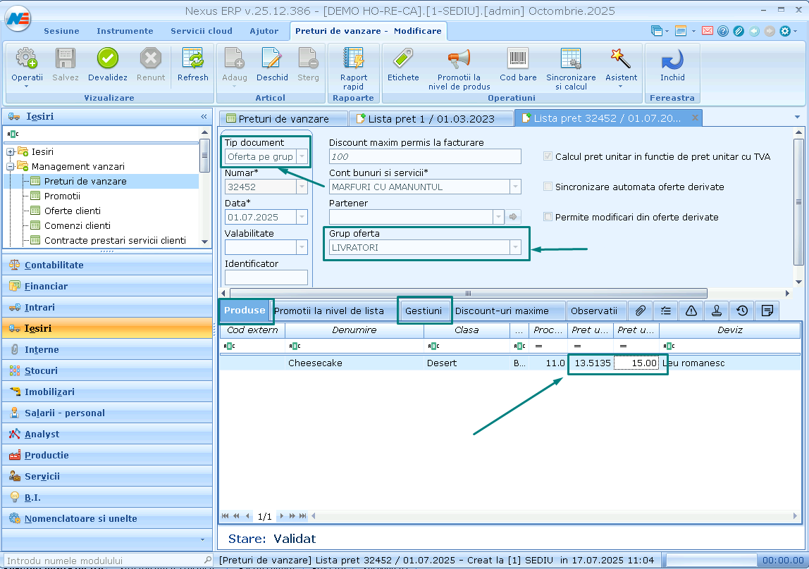 2. Creare lista de preturi pe grup oferta livratori